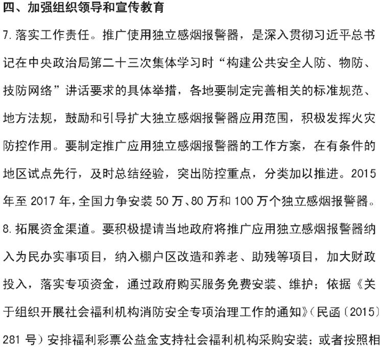 【獨立式煙感】火災(zāi)探測報警器六部委支持文件